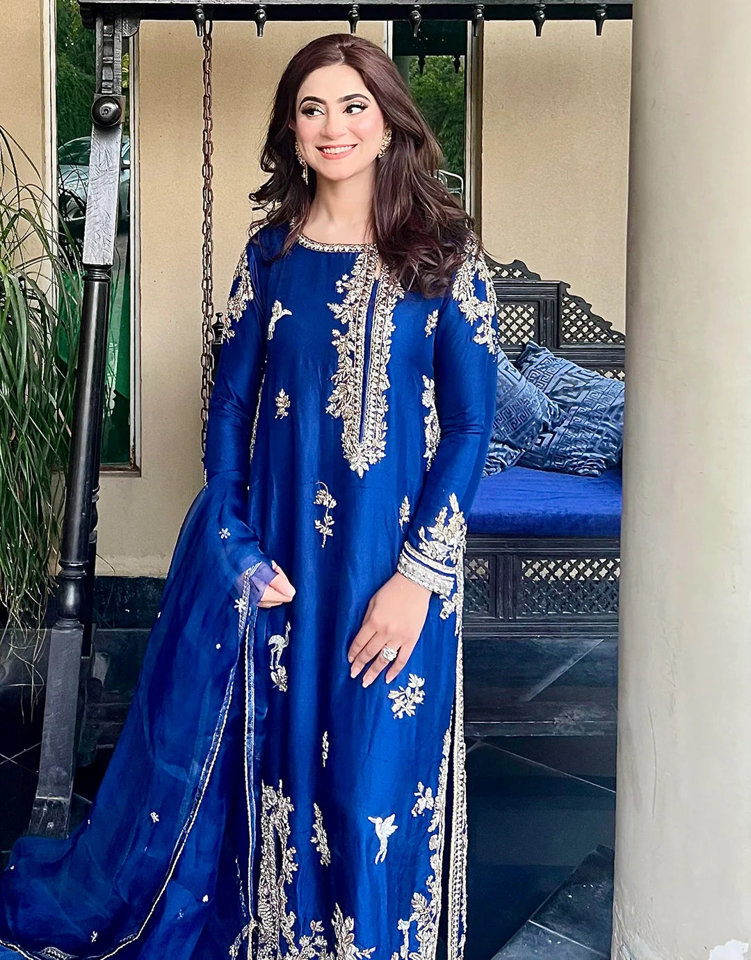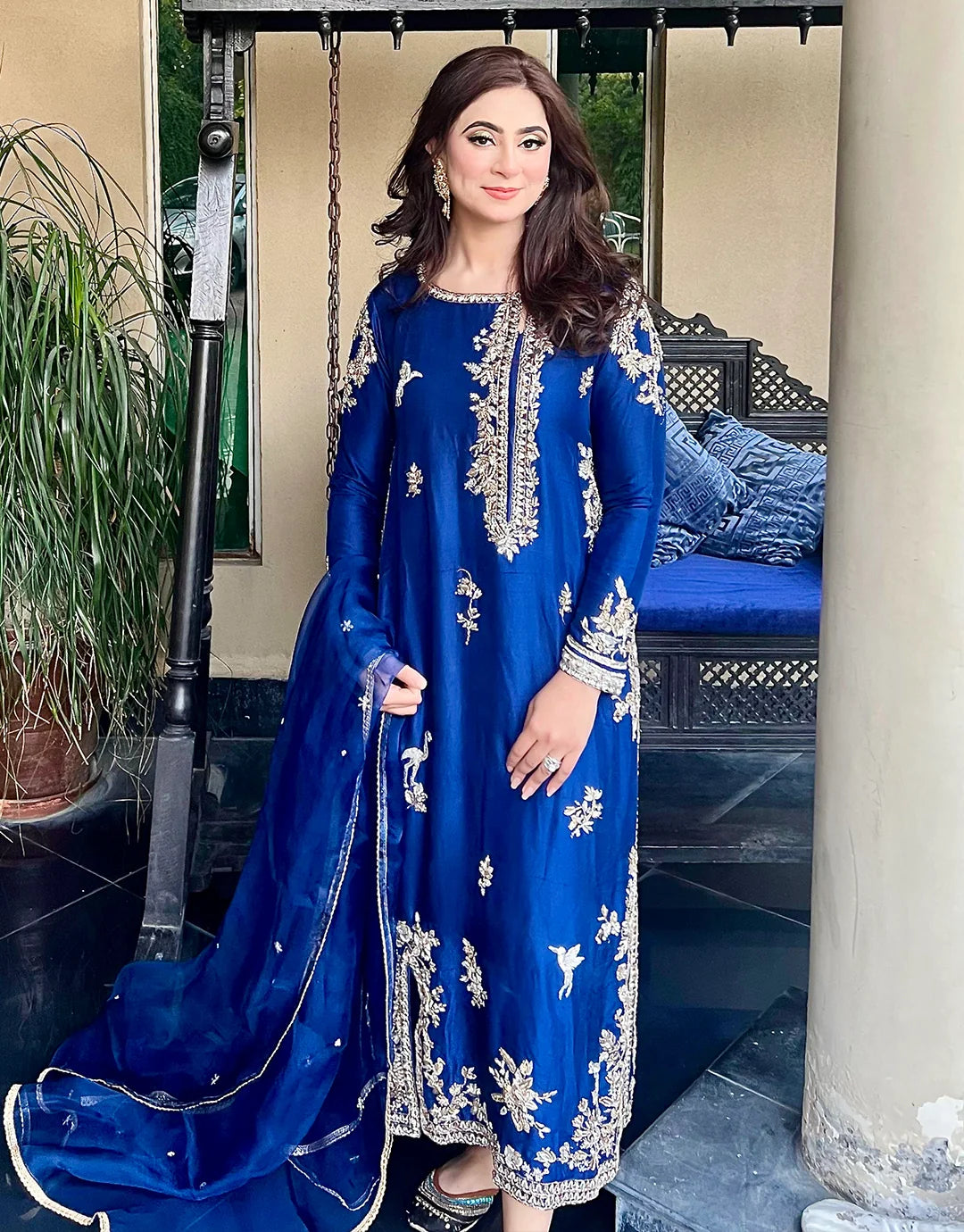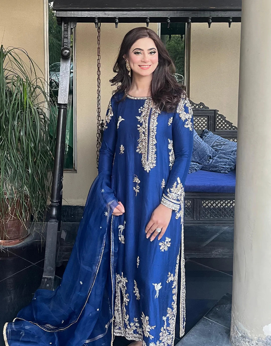 Radiate elegance with Aurore, a striking 3-piece outfit in a bold and captivating electric blue. Crafted from pure raw silk, the shirt and trouser offer a rich, luxurious feel, perfect for making a refined statement. The shirt is adorned with intricate hand embellishment on the front, neck, and sleeves, adding a touch of artisanal beauty to this regal look. Paired with a lightweight organza dupatta, Aurore is designed for formal occasions, parties, and weddings, making it your go-to for celebrations where grace and glamour are essential.