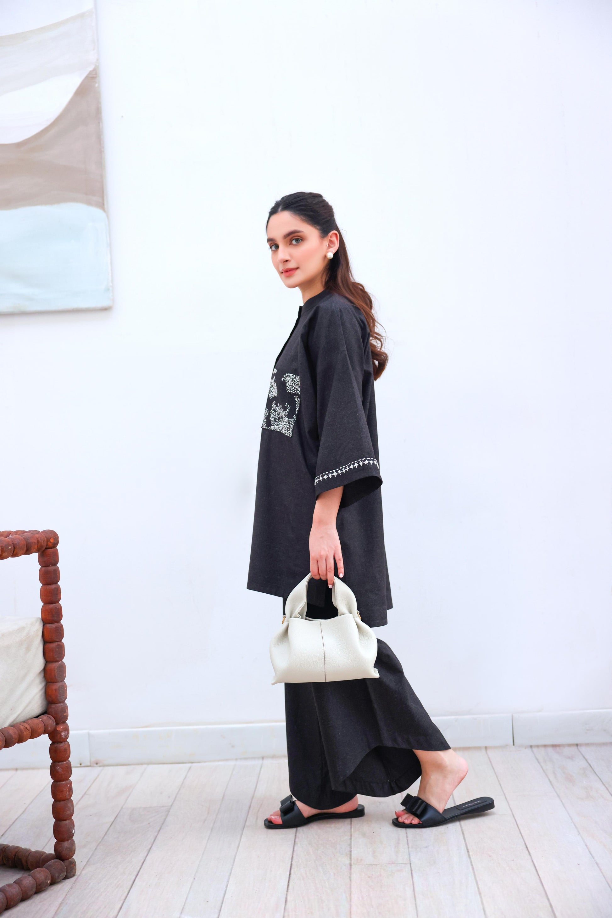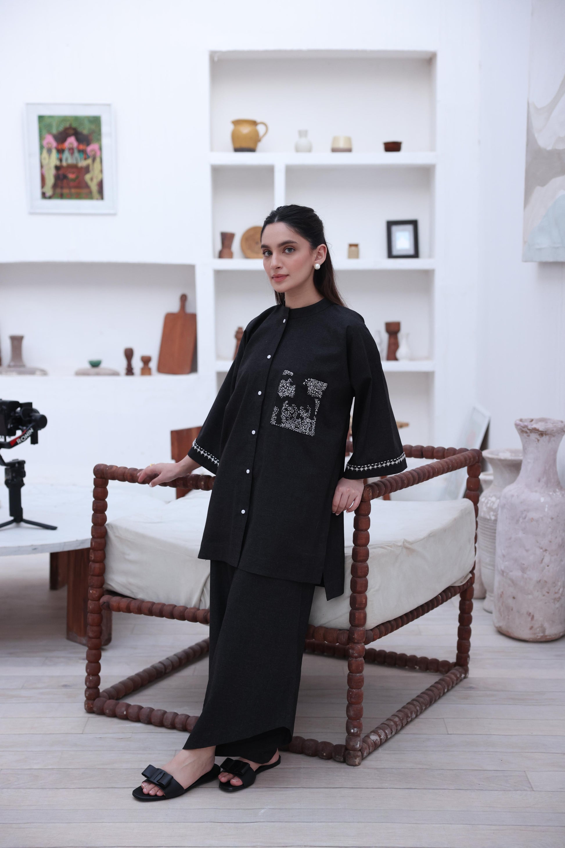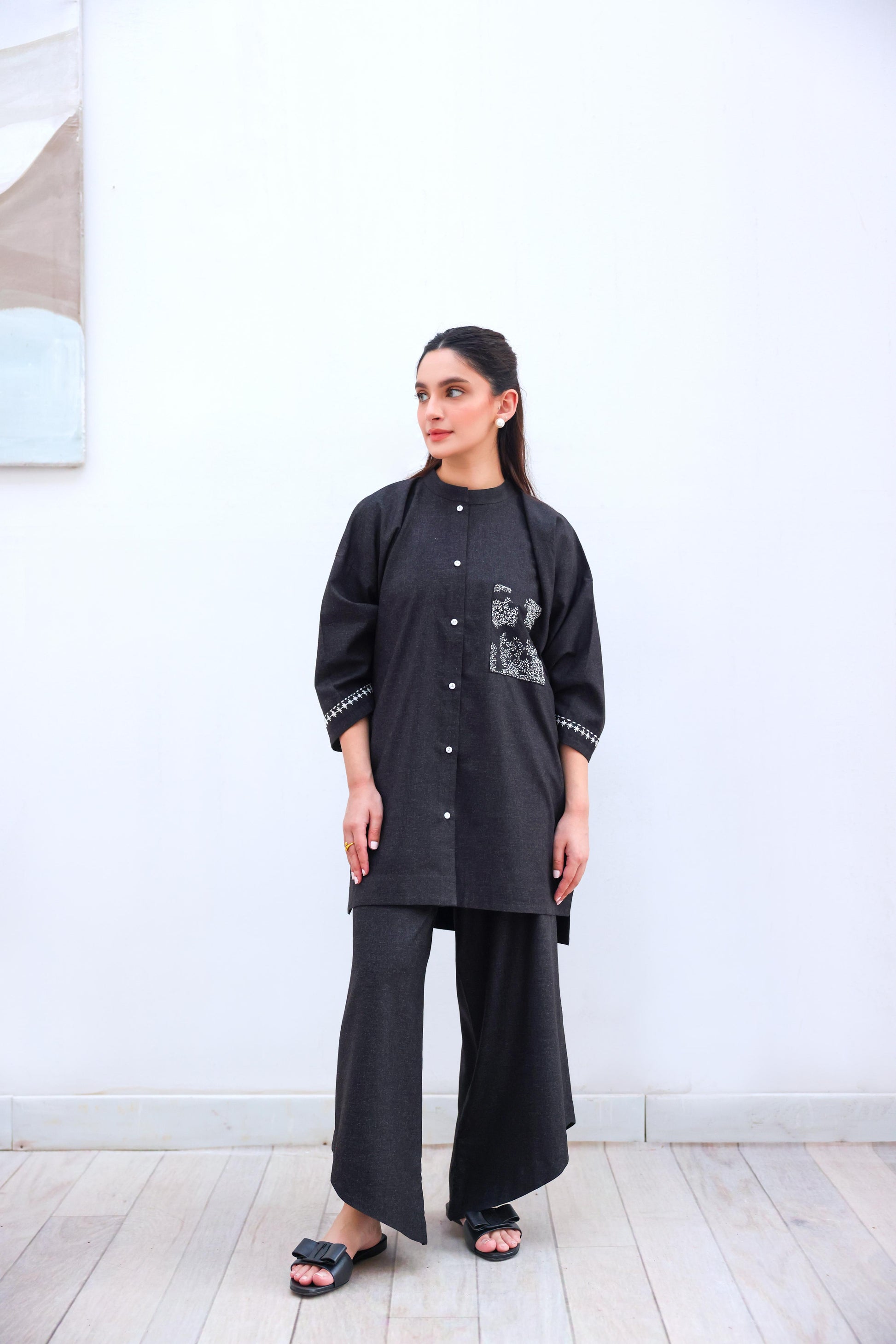 Too many soirées and nothing to wear. Comes Liana to the rescue. Embroidered with our signature artistry, our Liana shirt paired with playful high-low pants makes the perfect excuse to attend every event this season in style!