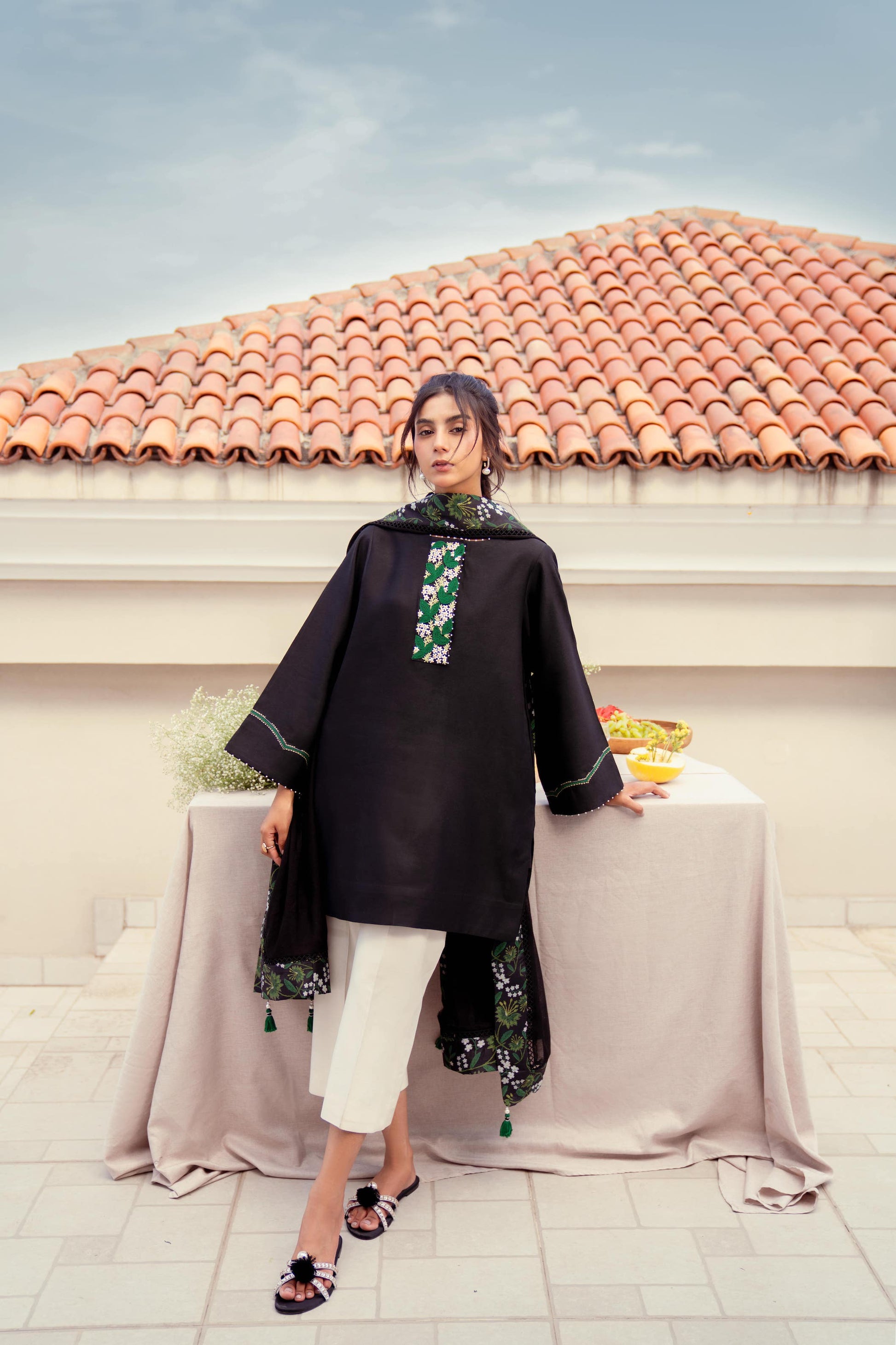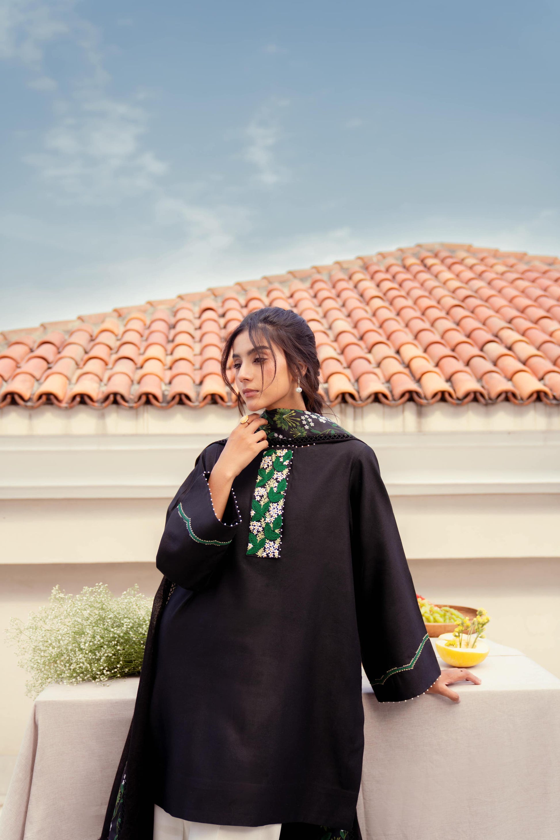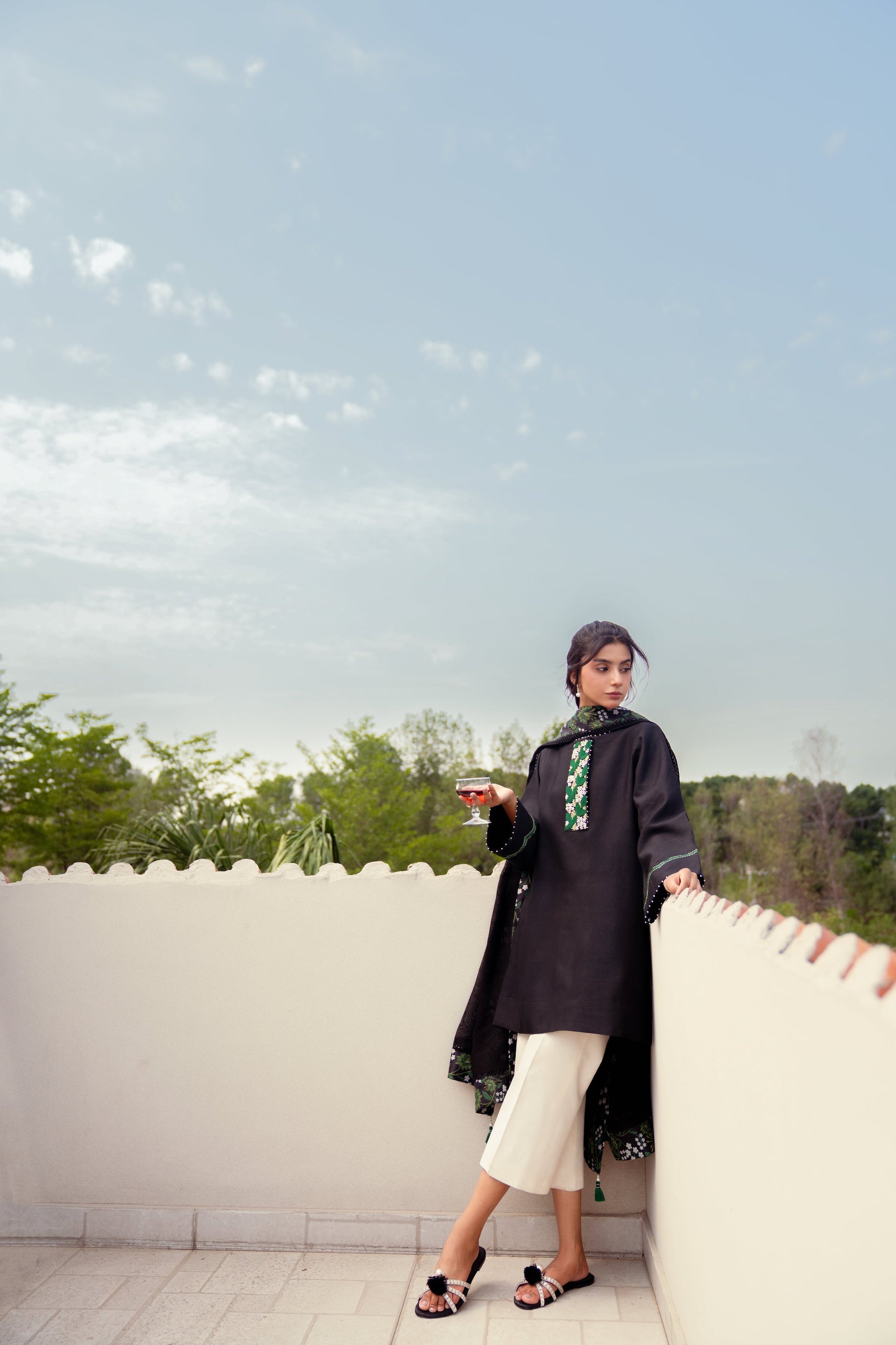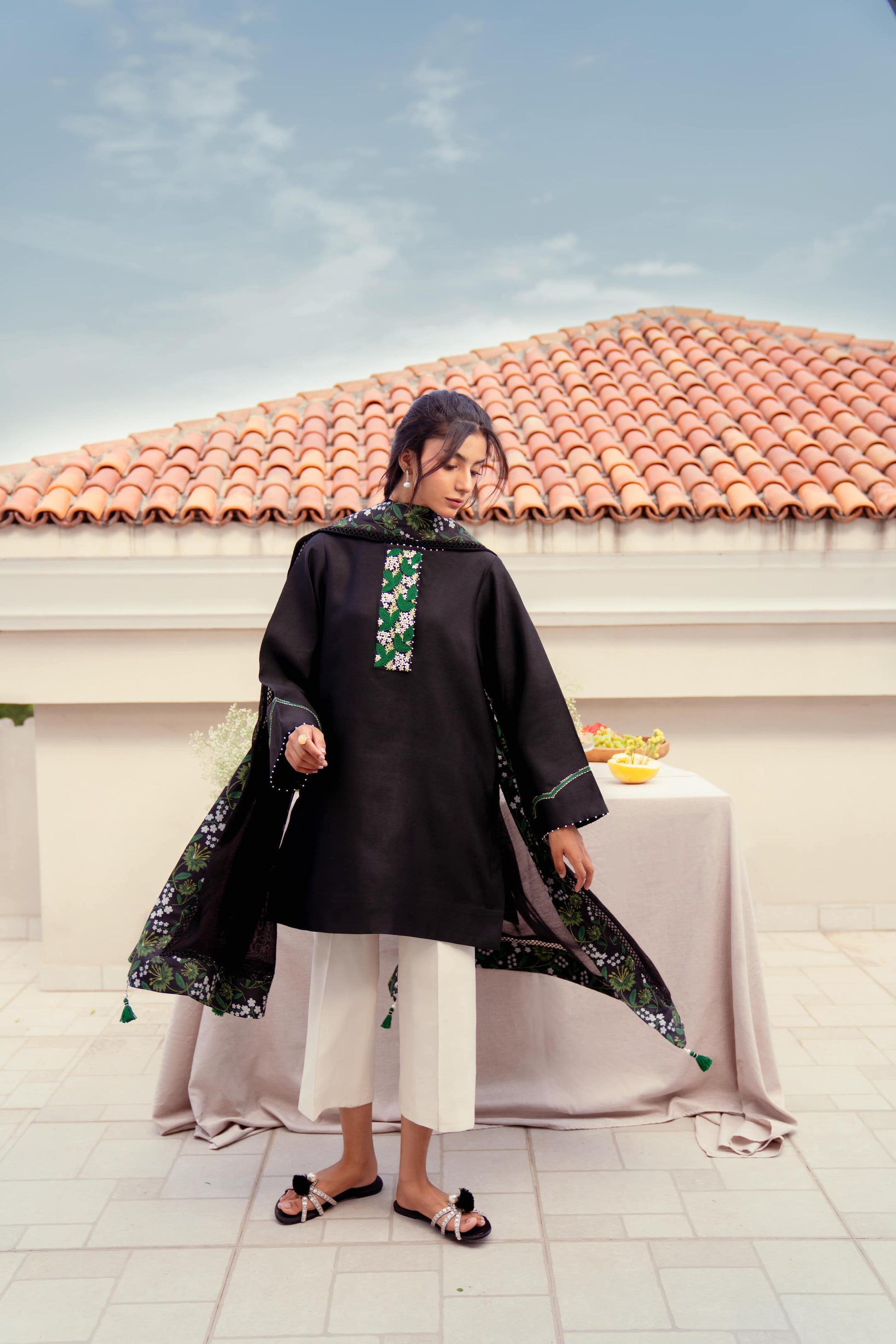 Introducing Reem, our house favorite. A classic black on cotton net with playful motifs dancing along the neckline and a relaxed silhouette, the Reem shirt set is made for all your festive soirée's. Paired with a hassle-free cotton net dupatta with digitally printed silk borders, this is a must-have.