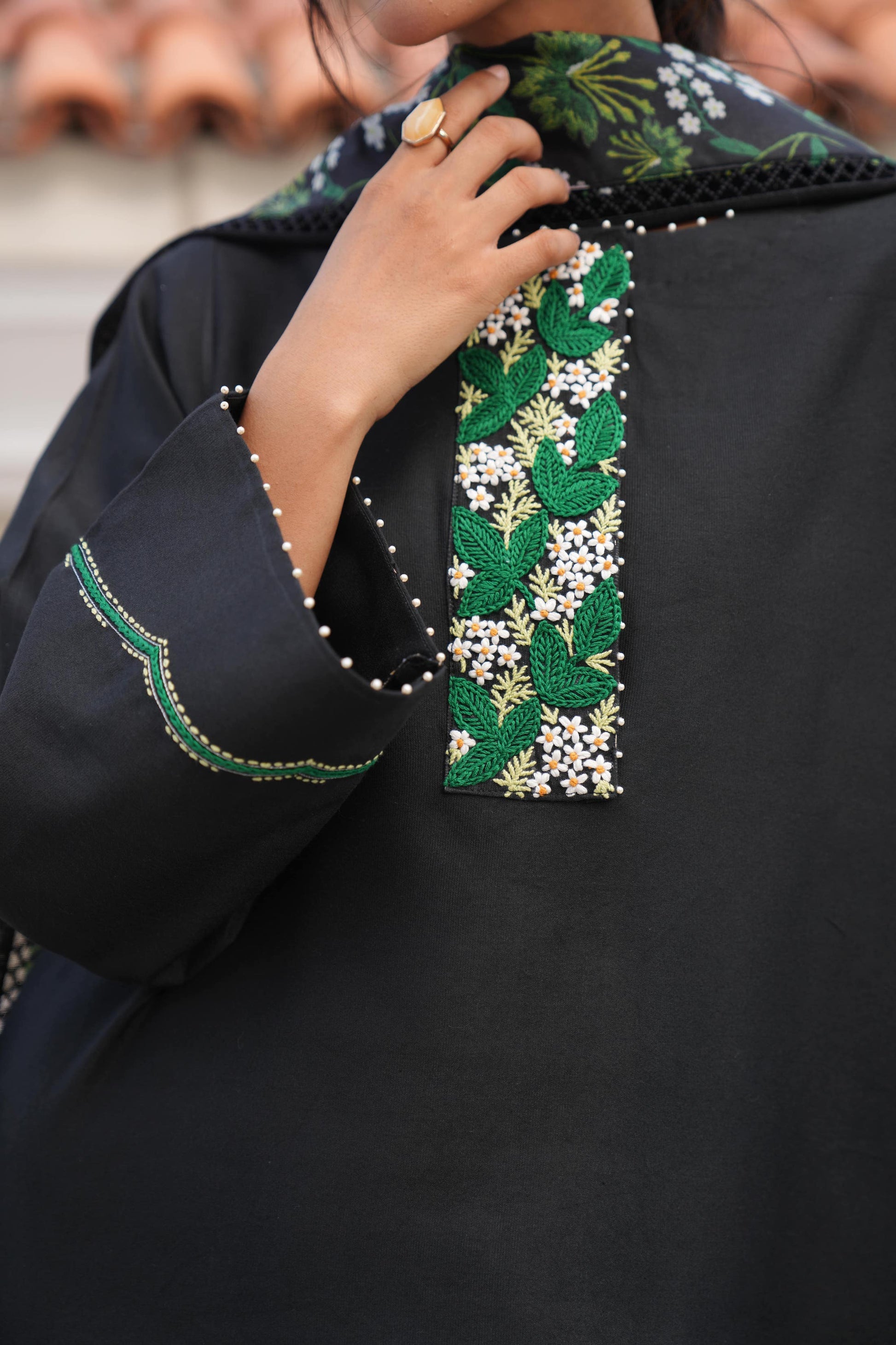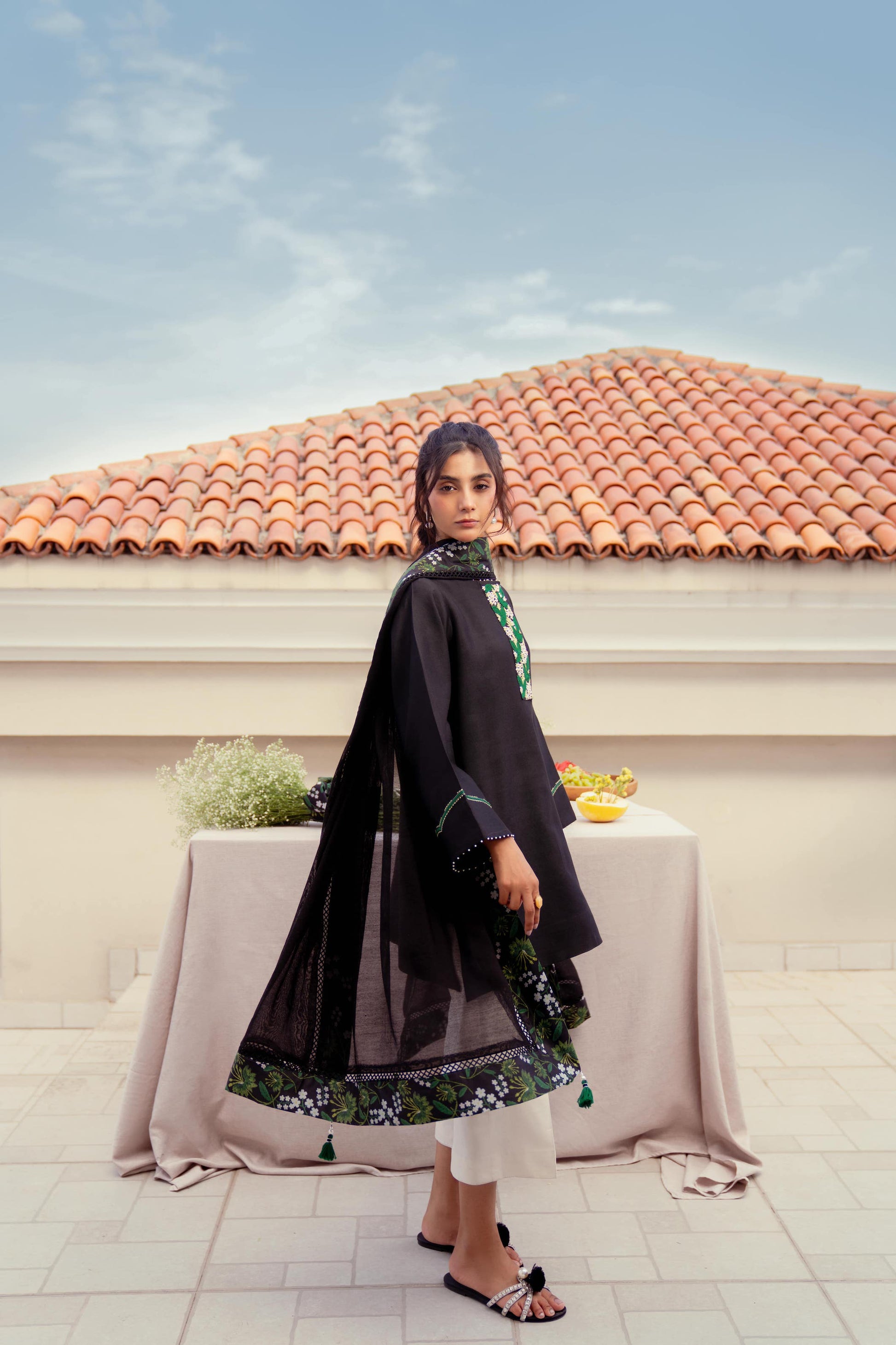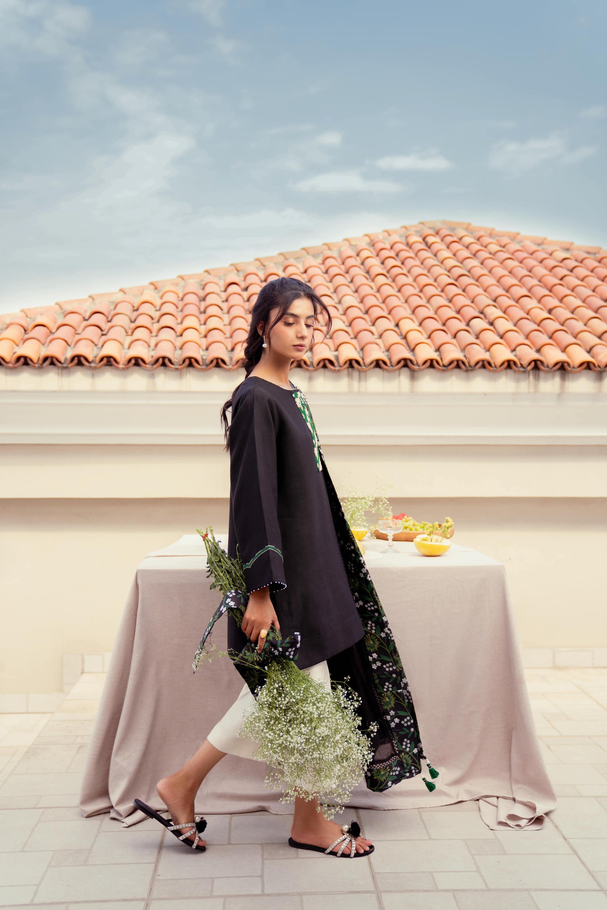 Introducing Reem, our house favorite. A classic black on cotton net with playful motifs dancing along the neckline and a relaxed silhouette, the Reem shirt set is made for all your festive soirée's. Paired with a hassle-free cotton net dupatta with digitally printed silk borders, this is a must-have.