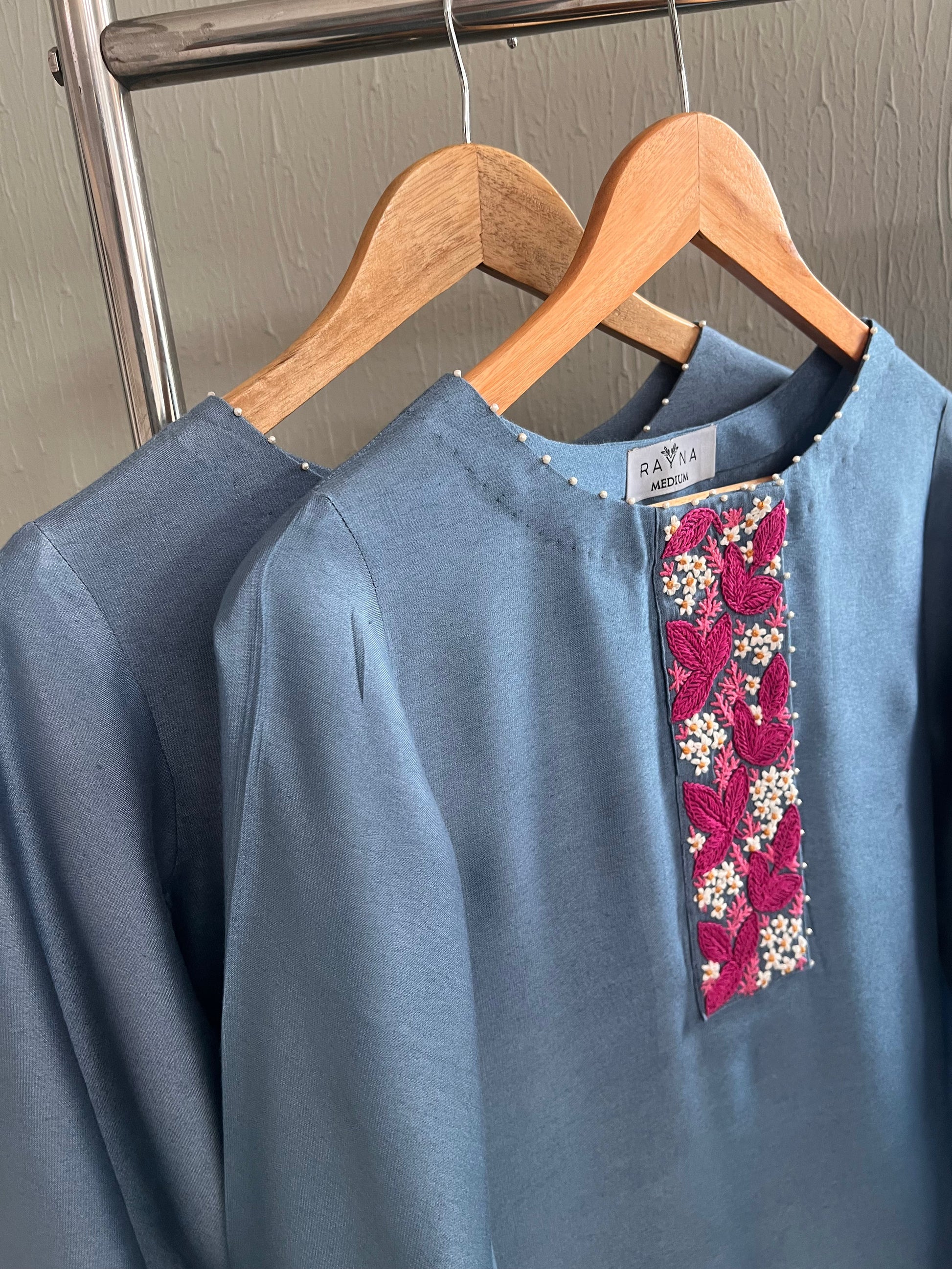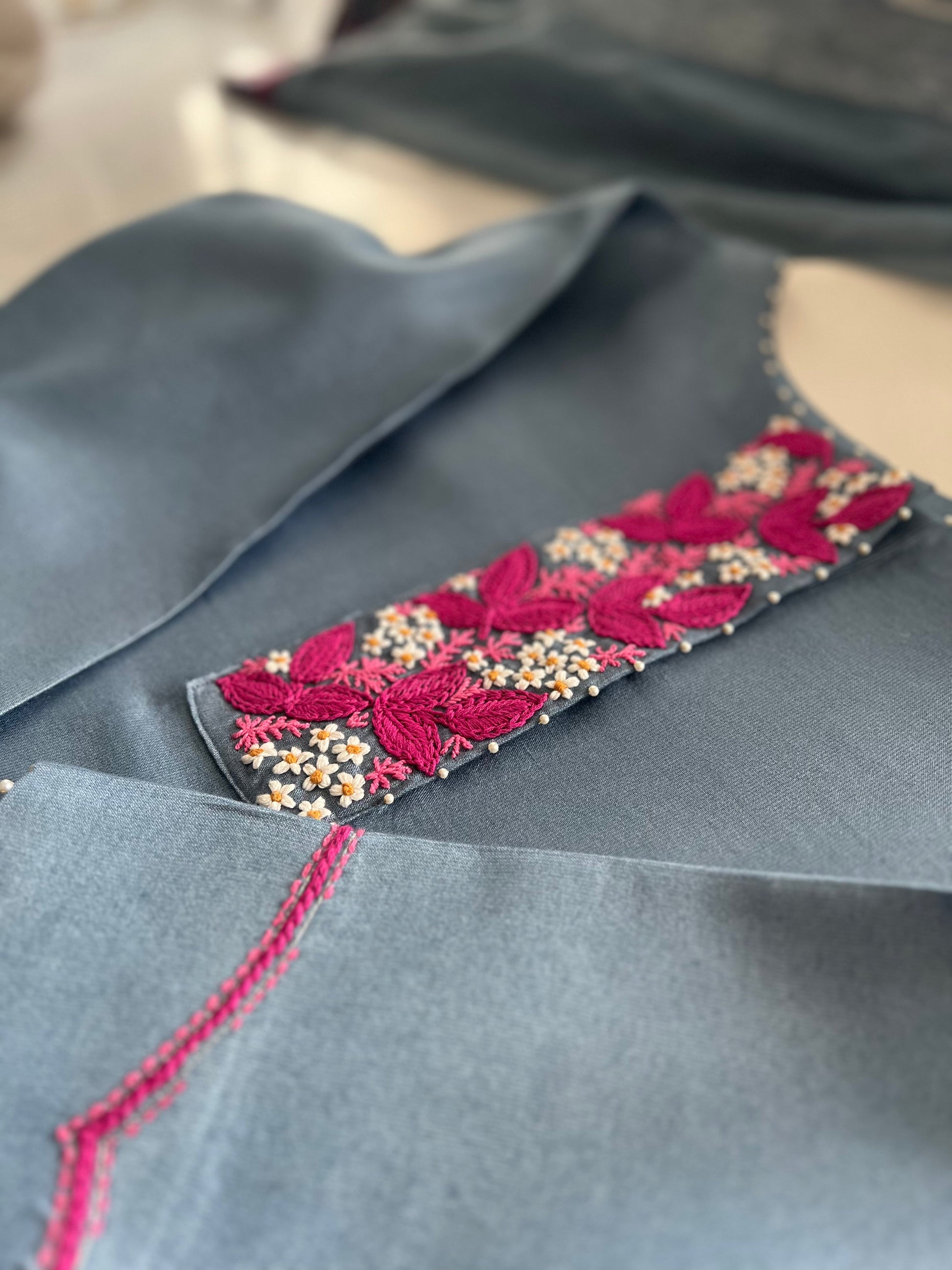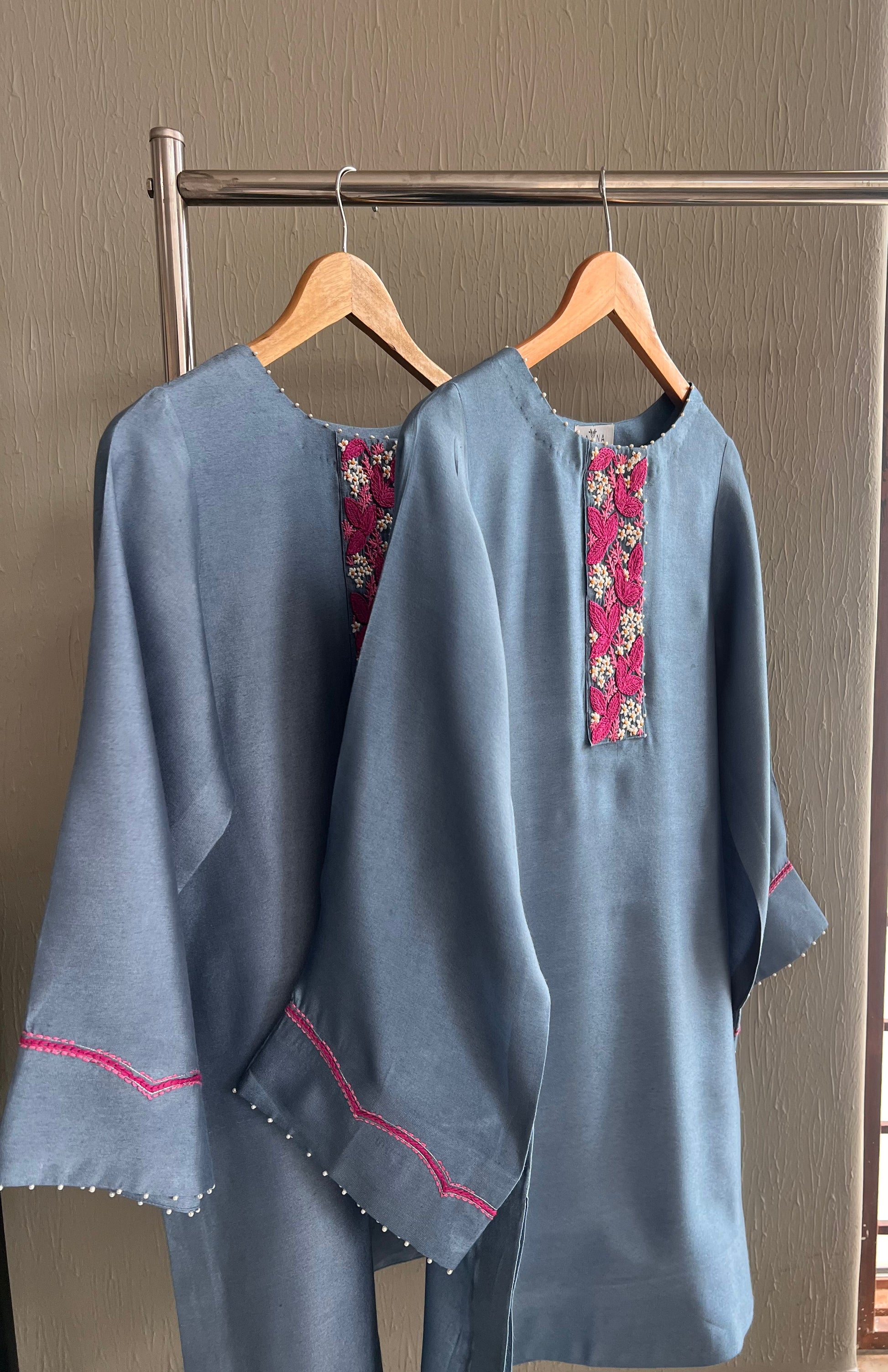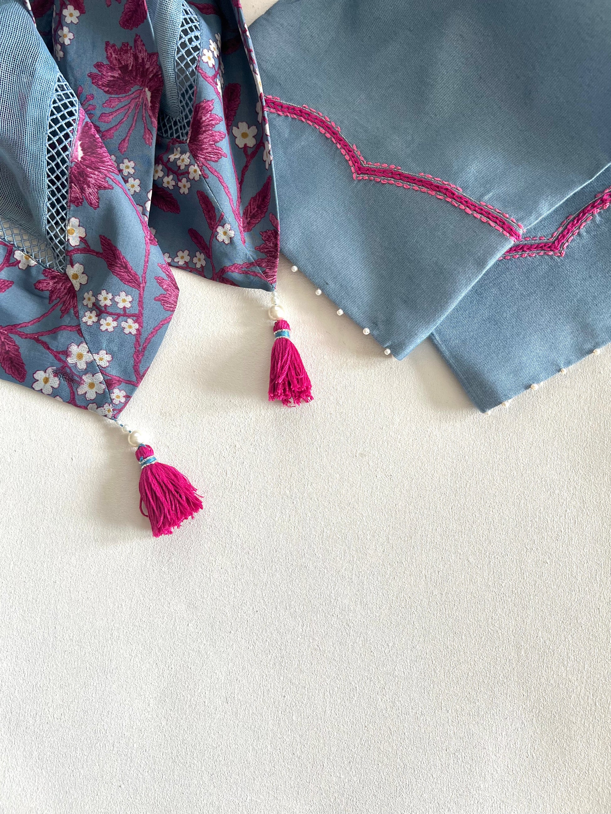 Introducing Reem, our house favorite. A classic black on cotton net with playful motifs dancing along the neckline and a relaxed silhouette, the Reem shirt set is made for all your festive soirée's. Paired with a hassle-free cotton net dupatta with digitally printed silk borders, this is a must-have.