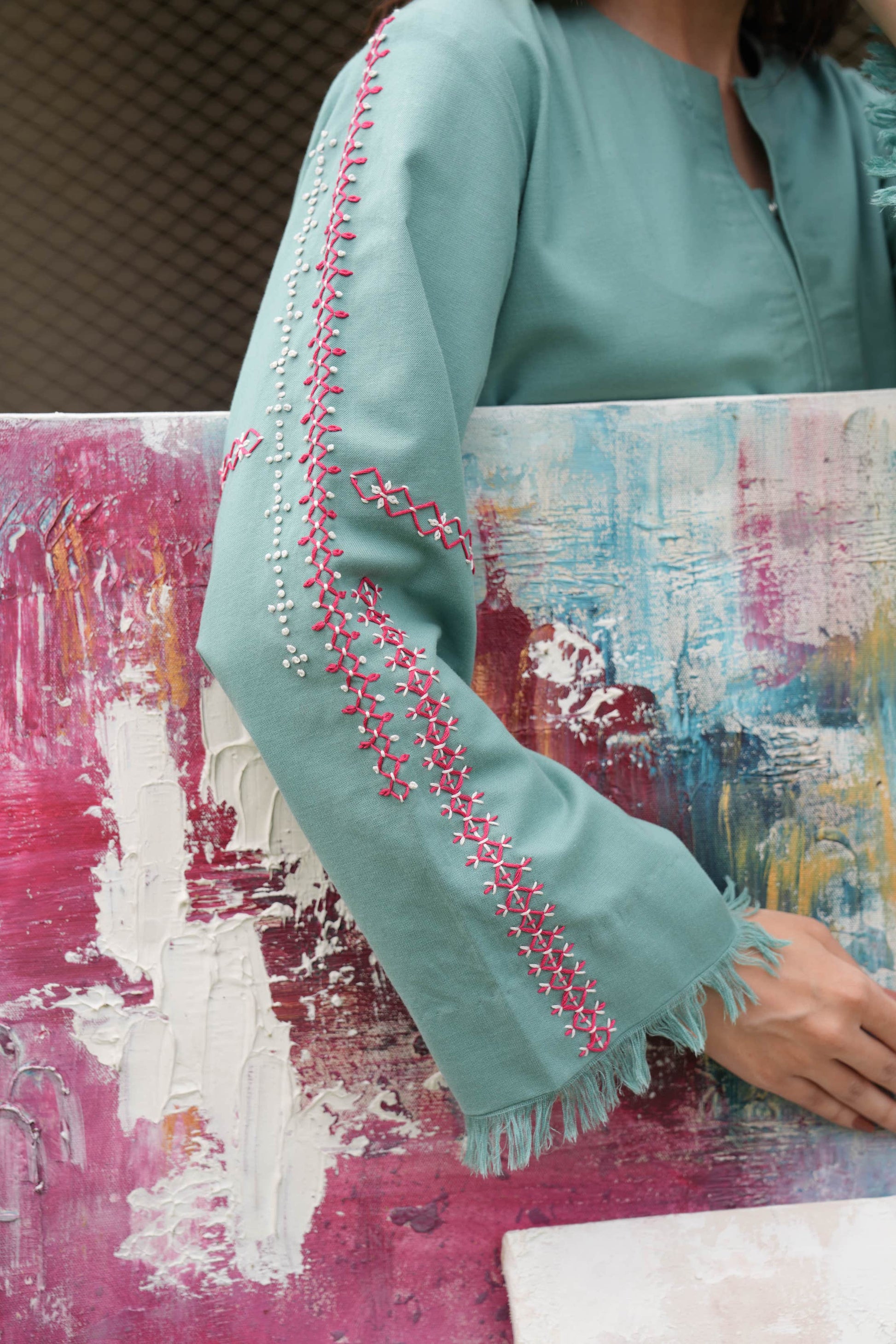 Meet Savanna, our carefully crafted kurta set that embodies everyday luxury. Cut from all season linen, Savana's colour complements its embroidery. Distinctive pattern of this makes it both elegant and modern. Don't miss out on the little dangling goodness on the neckline.