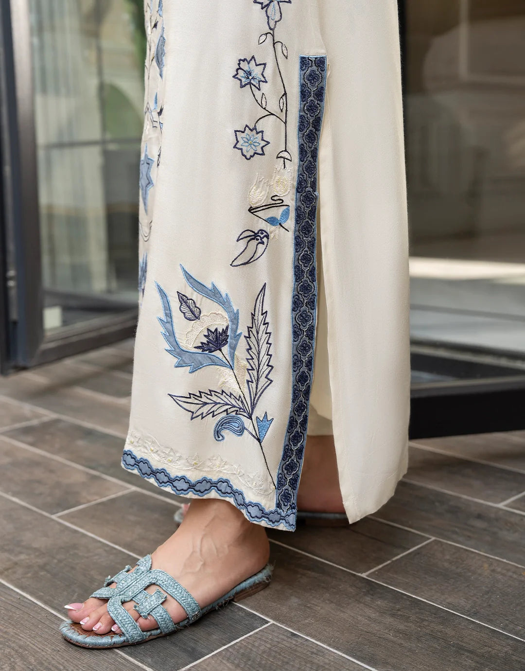 Redefine timeless elegance with this pure white Khadi ensemble, beautifully detailed with delicate embroidery. The breathable, textured fabric offers all-day comfort while maintaining a polished look. Ideal for festive mornings or serene evening gatherings, it brings effortless grace to any occasion. A wardrobe essential for women who appreciate classic style with a modern edge.